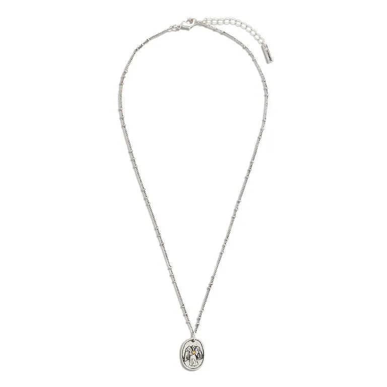 - Demdaco silver-toned brass necklace features a guardian angel charm.
