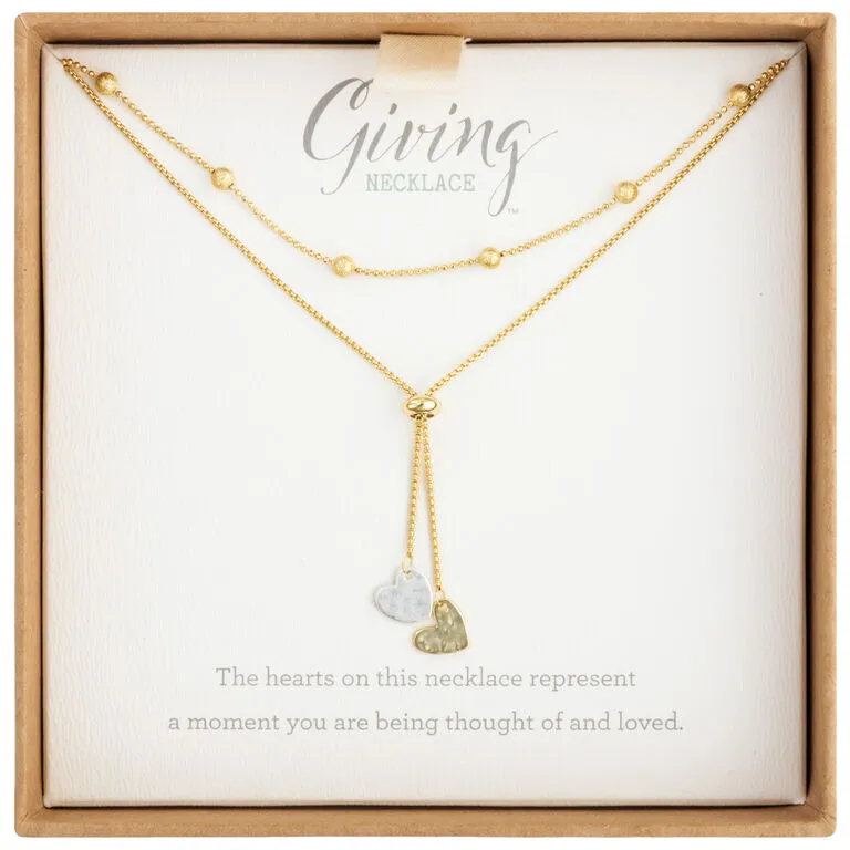 Simple and sentimental, this sweet layered necklace features gently hammered gold and silver heart charms that dangle from an adjustable bead, adding an attractive focal point to business, casual and evening outfits. A meaningful gift, this necklace comes packaged with an encouraging and supportive message that’s perfect for a good friend or family member.