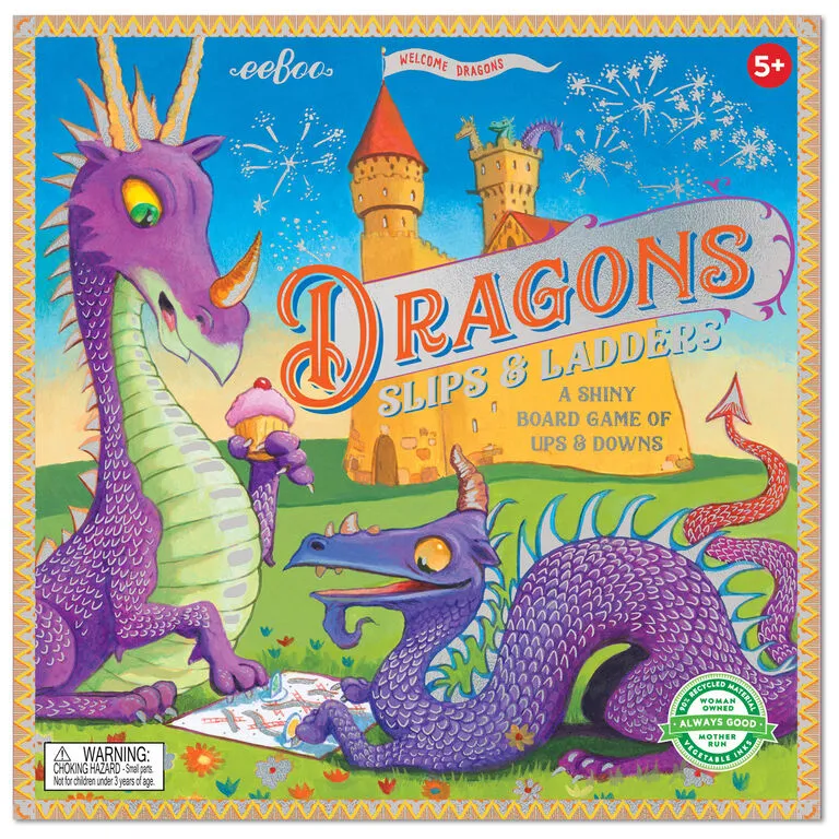 - “Dragons Slips and Ladders” board game for kids.
