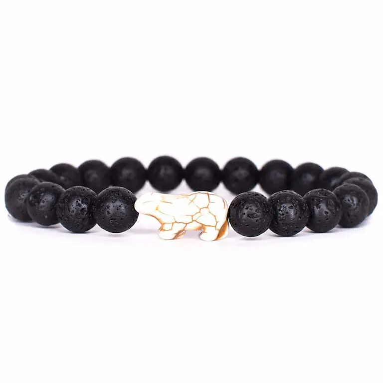 - Stretch bracelet features polar bear and lava stone beads along with an assigned real polar bear to track online.