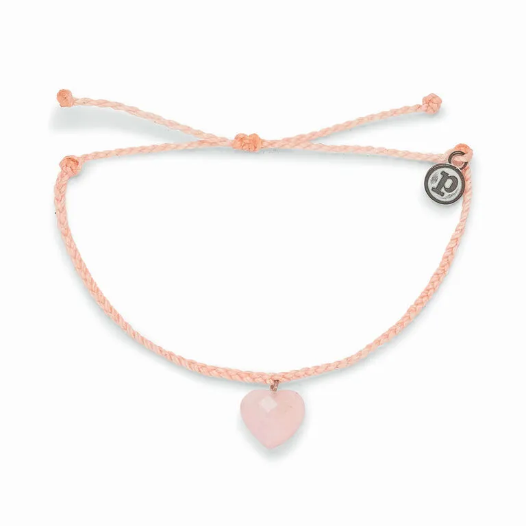 - Pura Vida Stone Heart string bracelet features a rose quartz charm.