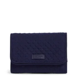 This small but hardworking Vera Bradley wallet keeps your life organized with plenty of interior slips for cash, cards, coins and ID, and two pin-snap closures. Smart technology with worry-free, RFID-blocking liner protects your credit and debit cards from unwanted scans. And it’s as pretty as it is practical in a classic navy blue microfiber fabric with a patterned lining.